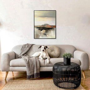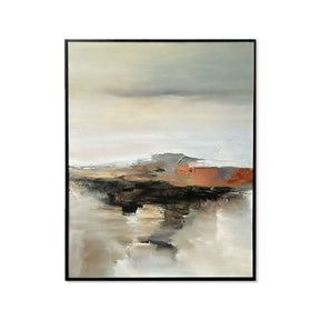 Horizon Texture is a contemporary acrylic painting that captures the quiet drama of landscape abstraction through layered texture and expressive brushwork. Soft neutral tones blend seamlessly with earthy rust accents and deep charcoal strokes, evoking distant horizons and reflective terrain.